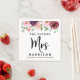 Servilletas modernas de "La futura Sra" para su desayuno nupcial, brunch nupcial, etc. La parte superior del borde presenta flores de acuarela de color burdeos, rojo y rosa pálido y vegetación y "Sra" escrita en una elegante letra cursiva grande. Personalice con su nombre de casada futuro y nombre de pila.