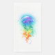 Grandes medusas de azulejo brillantes, de dibujos artísticos, con largos tentáculos en blanco, pintadas con fondo multicolor de acuarela. Mariscas arcoiris.