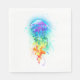 Grandes medusas de azulejo brillantes, de dibujos artísticos, con largos tentáculos en blanco, pintadas con fondo multicolor de acuarela. Mariscas arcoiris.