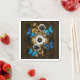 Composición de reloj de vapor redondo con dial numérico romano negro, decorado con arcos de oro y latón, mariposas morfo azules y lentes dañadas sobre fondo rayado marrón. Estilo Steampunk.