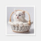 Un gatito blanco en una cesta de mimbre aislado sobre un fondo gris degradado suave