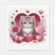 Servilleta De Papel Gatito sentado en una caja con flores y regalos