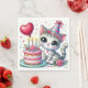 Servilleta De Papel Gato adorable celebrando el cumpleaños con pastel