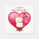 Un gato afortunado y humorístico (Maneki Neko) con corazón y globos para El día de San Valentín. Traducción japonesa: "Feliz Día de San Valentín" al principio, "Maneki Neko" al final, "Amor" a la izquierda, y "Suerte" a la derecha en el corazón.