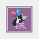Cute gato de esmoquin deseando un feliz cumpleaños. Cuenta con un gato blanco y negro con un gorra de cumpleaños y globos. Eslabón blanco en el gato para los fondos oscuros. Ideal para niños y adultos por igual. Ideal para fiestas de cumpleaños.