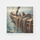 Un gato en forma de tabby se sienta cómodamente sobre la proa de un barco de madera con cuerdas enrolladas colgadas