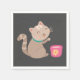 Personalizado animal Adorable de gato Cute con té rosado. El diseño de los niños de color pastel para un regalo para los niños o la decoración infantil. Fondo gris sobre algunos productos. Tema animal lindo. Un gatito adorable.