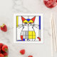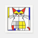 Resumen ilustracion geométrico de estilo mondrico colorido de un gato con cuadrados blancos, amarillos, grises y rojos y líneas negras