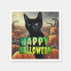 ilustracion de un gato negro de brujas en un campo de calabaza