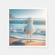 Una bonita gaviota en una playa con patatas fritas a orillas del mar.