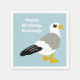Estas servilletas fiestas de papel están listas para ser personalizadas con su propio mensaje. Cuentan con un ilustracion de estilo personalizado de una gaviota sobre un fondo azul claro. Su mensaje aparece en letras en negrita y en blanco.