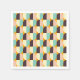 Geometric pattern with overlapping half-circles in teal, cream, brown, and peach on an orange background, creating a vibrant and retro feel.