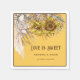 Diseño rústico de girasol y pampas con tipografía única. Colores: texto marrón oscuro y fondo amarillo mostaza. El dibujo de líneas tiene un toque pergamino, rojizo y amarillo ocre. Esta versión tiene más color mostaza brillante amarillo. Personalizar el texto para darle su toque personal y su mensaje. Va con temas del Boho, bodas de otoño y duchas, y muchos diseños florales rústicos. Mensaje de personalizable "El amor es dulce".