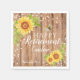 Un elegante y rústico girasol amarillo Feliz Jubilación fiesta Napkin compuesto por un fondo de grano marrón decorado con una bonito acuarela floral girasol amarillo con una abeja y una cuerda de luces. La perfecta decoración de la mesa fiesta para un fiesta jubilado. Personaliza con un nombre y una fecha para hacerlo especial. Todo el texto se puede modificar si es necesario para personalizar el elemento.
