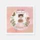 Add a delightful and coordinated touch to your baby shower table with these 'Berry Sweet' paper napkins! Each napkin features a charming watercolor illustration of a baby girl holding a basket of strawberries, surrounded by a whimsical butterfly, a cute snail with a strawberry shell, and our adorable duckling. The design is personalized with "Samantha's Berry Sweet Baby Shower" and the event date, set against a soft, coordinating pink watercolor background. Perfect for serving desserts, appetizers, or drinks, these napkins are an essential element of your 'A Berry Sweet Baby' collection, enhancing your party with sweet and whimsical charm.