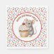 A cute girl's birthday birthday personalized paper napkins with a sweet mouse and cupcake theme. Pink, beige and cherry red sprinkles on a cute vanilla cupcake being held by a watercolor mouse!