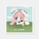 Cute and girly farm-themed birthday napkins! Designed to match your girls 2nd birthday celebration, these napkins feature a watercolor pink barn, sweet baby animals — pig, cow, sheep, and chick — and the playful phrase “Oink, Baa, Moo – [Name] is two!” Perfect for serving snacks and cake with rustic country style, these napkins bring fun and color to your toddler’s barnyard birthday bash.