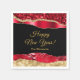 Esta elegante y glamorosa servilleta de Año Nuevo Feliz tiene lágrimas de purpurina falsas rojas y doradas sobre un fondo negro. El texto combina el guión manuscrito y las fuentes sans serif modernas para un aspecto elegante y sofisticado.