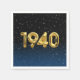 Globos dorados de cumpleaños mylar para 1940 cumpleaños en fondo negro gradiente y azul con estrellas nocturnas.
