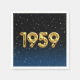 Globos de Relieve metalizado dorado para el año de nacimiento de 1959 sobre fondo negro degradado y azul con estrellas nocturnas para la fiesta de cumpleaños.