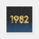 Globos dorados de cumpleaños para el cumpleaños en el año 1982 sobre fondo negro gradiente y azul con estrellas nocturnas.