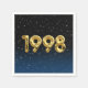 Globos de Relieve metalizado dorado para el año de nacimiento de 1998 sobre fondo negro degradado y azul con estrellas nocturnas para la fiesta de cumpleaños.