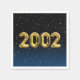 Globos de Relieve metalizado dorado para el año de nacimiento 2002 sobre fondo negro degradado y azul con estrellas nocturnas para la fiesta de cumpleaños.