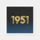 Globos dorados de cumpleaños mylar para el año de nacimiento de 1951 sobre fondo negro gradiente y azul con estrellas nocturnas