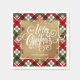 Feliz Navidad con letras blancas de moda sobre un chisme de Relieve metalizado de oro falso, estas servilletas tienen un fondo de manta de vacaciones rojas, verdes y blancas y están personalizadas con tu nombre. MÁS diseños en nuestra tienda.