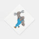 Un gorila vestido de mecánico sosteniendo un brazalete. Este diseño parece realmente efectivo en estas servilletas de papel