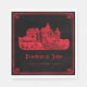 This gothic wedding napkin features a haunting vintage illustration of a castle, which you can replace with an image of the destination where you'll be married (transparent background preferred). A calligraphic blackletter font displays the bride and groom names, date and location. A hand-drawn border encloses the design. The color scheme is blood-red on black. ••• For more wedding suites, visit my store Zazzle.com/EventsByJessicaAmber ••• For custom orders, message me on Zazzle