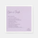 Las servilletas bodas modernas presentan un diseño geométrico sencillo y mínimo con una línea vertical a lo largo del lado izquierdo con sus nombres y una lista de hechos divertidos en alineación a la izquierda. Sus nombres están en un guión de escritura a mano para un toque elegante. En la esquina inferior derecha están los dos monogramas iniciales sobre una pequeña línea horizontal. La paleta de colores puede cambiarse en la herramienta de edición de diseño.