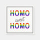 Toallas dulces y divertidas, con el texto decorativo "HOMO dulce HOMO", una palabra por línea. Primero y último muestra letras mayúsculas en negrita rellenas con el símbolo gay, la bandera arcoíris. El "dulce" centrado está ligeramente anglonizado y puede ajustarse en función del color. Se puede personalizar el color de fondo sólido. También puede eliminar el marco sugerido.