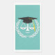 Fiesta creativa de graduación de la escuela de derecho o servilletas o toallas de invitados con divertidas básculas de justicia usando gorra negra y dorada para graduación de abogado. Para personalizar añadir tu texto.