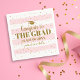 Celebra tu graduado con estas servilletas festivas con un divertido fondo de rayas rosas y blancas a la moda y tu texto personalizado, acentuado por un falso confetti purpurinoso de oro y una gorra de oro Grad. Perfecto para un fiesta de bachillerato o universitario.