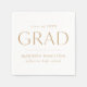 Las elegantes servilletas de graduación con "Grad" mostradas en letras doradas modernas con un fondo blanco. Personalice las toallas modernas de papel de graduación con el nombre del graduado, el nombre de la escuela y el año de graduación.