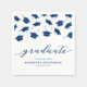 Las servilletas personalizadas de la fiesta de graduación con un sencillo fondo blanco que se puede cambiar a cualquier color, con tapones de mortero azul cayendo y una plantilla de texto moderna que es fácil de personalizar.
