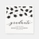 Las servilletas personalizadas de la fiesta de graduación con un sencillo fondo blanco que se puede cambiar a cualquier color, con tapones de mortero negros cayendo y una plantilla de texto moderna que es fácil de personalizar.