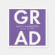 Las servilletas de graduación personalizado con "Grad" en letras en negrita y blanco con fondo morado o color de su elección. Personalice las servilletas de la fiesta de graduación agregando el nombre y el año de graduación. Las toallas personalizadas para graduación son perfectas tanto para fiestas de bachillerato como universitarios.