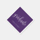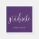 Las servilletas de graduación, elegantes y sencillas, presentan un guión moderno de caligrafía en un fondo morado con el nombre del graduado y la clase de graduación.