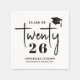 Esta simple y moderna servilleta de papel para fiesta de graduación presenta un diseño limpio y minimalista con un acento de gorra de graduación colocado en la parte superior derecha. “Clase de” aparece en tipografía serif clásica, mientras que la palabra “Veintiséis” está escrita en una escritura manuscrita fluida. El número “26” está colocado justo debajo del texto de la escritura, también en una fuente serif, creando una forma única y elegante de mostrar “Clase de 2026”. A continuación, el nombre del graduado y la escuela se muestran en fuentes serif coincidentes para un aspecto pulido y coherente.