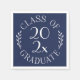 Organiza una elegante fiesta de graduación con servilletas de papel que presentan un emblema de tipografía blanco sobre azul marino que dice: CLASS OF [AÑO] GRADUATE con las palabras curvadas alrededor del año en el medio con hojas botánicas curvadas a lo largo de cada lado del diseño circular. Personaliza el año en la barra lateral.