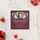 Estas servilletas de la fiesta de graduación presentan un collage de tres fotos cuadradas personalizados encima de la palabra "graduado" en una tipografía deportiva de color dorado sobre un fondo rojo borgoñón. Añada a continuación el nombre del graduado, el año escolar y el año de clase en sans serif font.