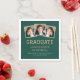 Estas servilletas de la fiesta de graduación presentan un collage de tres fotos cuadradas personalizados encima de la palabra "graduado" en una tipografía deportiva de color dorado sobre un fondo verde oscuro. Añada a continuación el nombre del graduado, el año escolar y el año de clase en sans serif font.