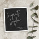 Sencillo y divertido guión moderno de felicitaciones sobre fondo negro, estupendas servilletas personalizadas para la fiesta de graduación.