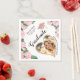 Estas toallas únicas de papel para graduación femenina con un elegante diseño floral son fáciles de personalizar con la foto de la graduada, sus nombres de pila y apellidos, el año del evento y el nombre de la escuela. En este elegante diseño de fondo blanco, se han colocado bonitas flores rosadas de rosa y un ilustracion con gorro de jardín.