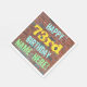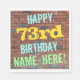 Este divertido diseño de pañuelos de papel con temática de cumpleaños incluye un mensaje como "¡FELIZ CUMPLEAÑOS 73, NOMBRE AQUÍ!", donde el nombre puede ser personalizado. El fondo está representado por una pared de ladrillo de ladrillo marrón rojizo. El texto del mensaje de personalizable presenta colores como azul, amarillo y verde, y tiene un aspecto inspirado en el de los graffitis pintados. Las servilletas como estas podrían ser usadas en una fiesta de cumpleaños para alguien que está celebrando su cumpleaños setenta y tres. [~Z0000271]