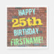 Este divertido diseño de pañuelos de papel con temática de cumpleaños incluye un mensaje como "¡FELIZ CUMPLEAÑOS 25, FIRSTNAME!", donde el nombre se puede personalizar. El fondo está representado por una pared de ladrillo de ladrillo marrón rojizo. El texto del mensaje de personalizable presenta colores como azul, amarillo y verde, y tiene un aspecto inspirado en el de los graffitis pintados. Las servilletas como estas podrían ser usadas en una fiesta de cumpleaños para alguien que está celebrando su 25º cumpleaños. [~Z0000271]
