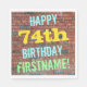 Este divertido diseño de pañuelos de papel con temática de cumpleaños incluye un mensaje como "¡FELIZ CUMPLEAÑOS 74, NOMBRE DE PELO!", donde el nombre se puede personalizar. El fondo está representado por una pared de ladrillo de ladrillo marrón rojizo. El texto del mensaje de personalizable presenta colores como azul, amarillo y verde, y tiene un aspecto inspirado en el de los graffitis pintados. Las servilletas como estas podrían ser usadas en una fiesta de cumpleaños para alguien que está celebrando su cumpleaños setenta y cuatro. [~Z0000271]