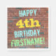 Este divertido diseño de pañuelos de papel con temática de cumpleaños incluye un mensaje como "¡FELIZ CUMPLEAÑOS, NOMBRE DE PELO!", donde el nombre se puede personalizar. El fondo está representado por una pared de ladrillo de ladrillo marrón rojizo. El texto del mensaje de personalizable presenta colores como azul, amarillo y verde, y tiene un aspecto inspirado en el de los graffitis pintados. Las servilletas como estas podrían ser usadas en una fiesta de cumpleaños para alguien que está celebrando su cuarto cumpleaños. [~Z0000271]